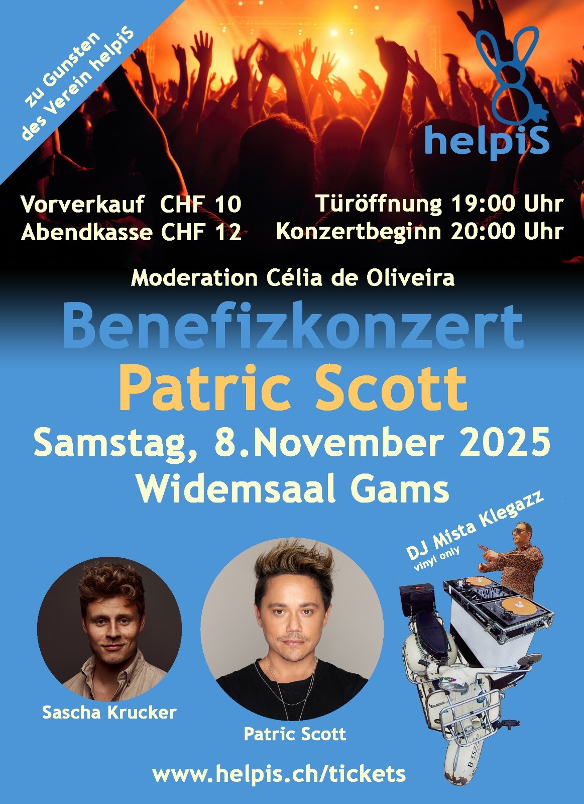 Der Verein helpiS veranstaltet ein Benefizkonzert mit Patric Scott zugunsten des Vereins.